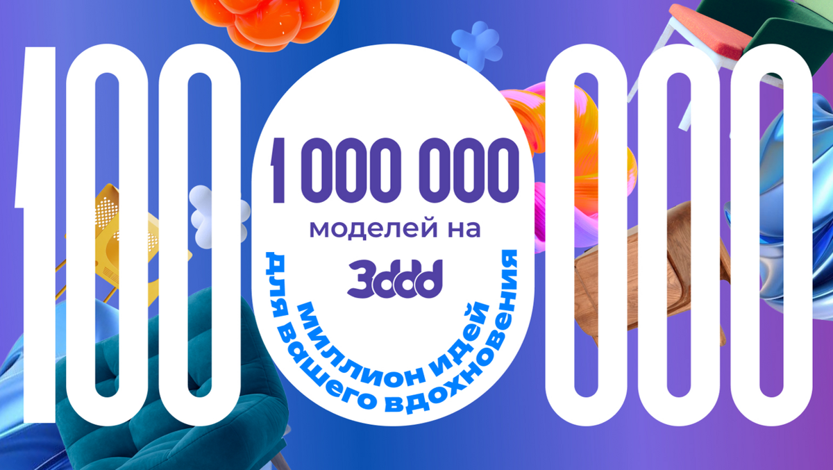 3ddd пробил отметку в миллиоооооон моделей. Да, вы не ослышались — 1 000 000 объектов, которые где-то прямо сейчас: Но миллион — это не просто красивая цифра. Это результат ежедневной работы и доверия. Это метка на большой дистанции, которую мы проходим вместе с вами. Это повод остановиться и сказать спасибо. Спасибо, этот миллион — про вас Тех, кто создаёт