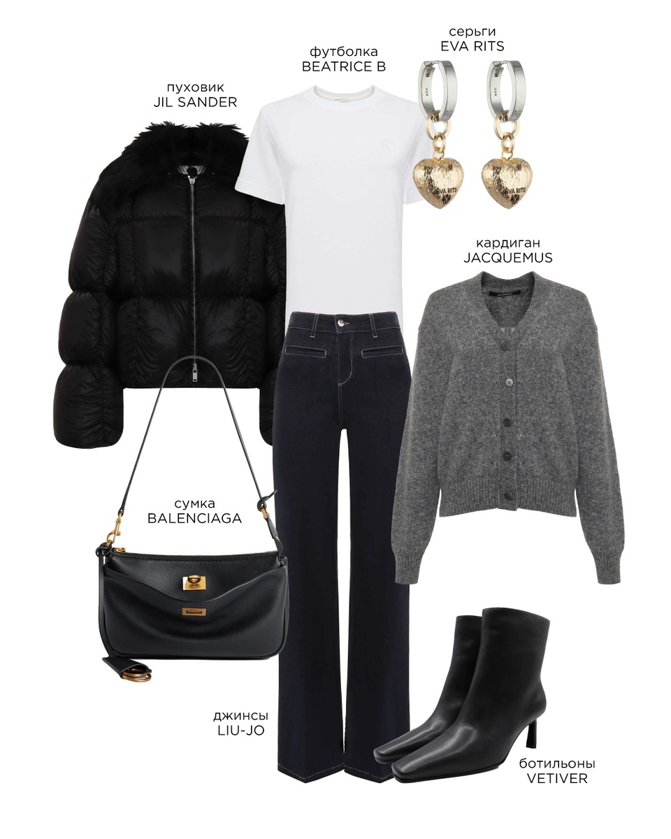 В мире, где мода становится все более демократичной, умение сочетать люксовые предметы гардероба с базовыми вещами превратилось в настоящее искусство. Это не просто стилевой прием, а философия современного подхода к формированию гардероба. Фокус на качестве Инвестируйте в базовые вещи так же тщательно, как и в предметы люксового гардероба — именно они создают фундамент вашего стиля. Идеально сидящие джинсы, качественные футболки из плотного хлопка, хорошо скроенные рубашки — без этого основания даже самые дорогие вещи не будут смотреться выигрышно. Пуховик, кардиган, футболка, джинсы, сумка, серьги, ботильоны Акцент на деталях Ошибается тот, кто надевает всё лучшее сразу. Люксовая вещь — как сильный аромат: работает, только если дозирована. Одна качественная сумка, обувь с характером или кашемировое пальто могут преобразить самый простой наряд, добавив ему индивидуальности и статусности. Серьги, пальто, костюм, сумка, ботильоны Философия цвета Сдержанная цветовая палитра — залог успешн