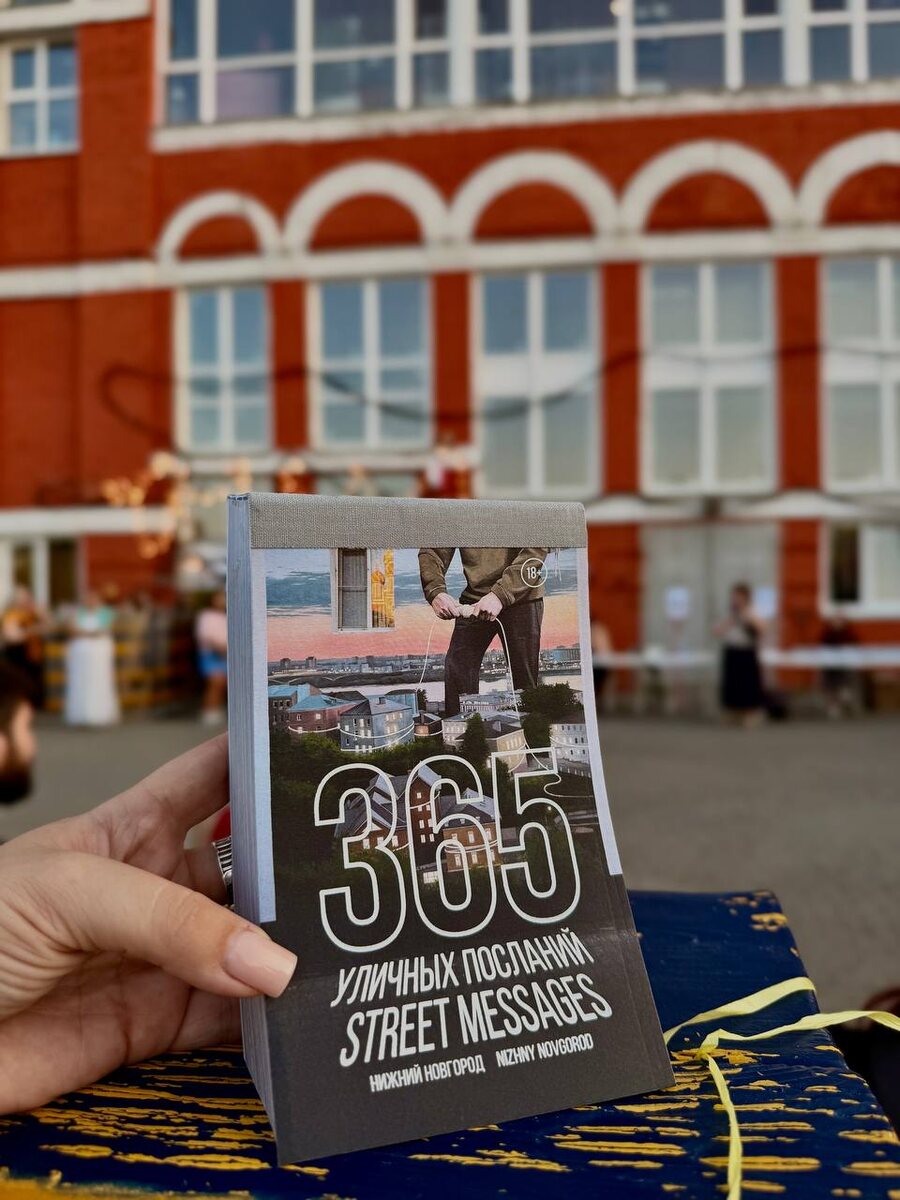 Сегодня «в свет» вышла книга «365 уличных посланий», посвященная уличному искусству Нижнего Новгорода. Это сборник из 365 работ, сделанных или сохранившихся в городе к 2024-2025 годам. Создатели сборника — Институт исследования стрит-арта при поддержке уличного сообщества. Во-первых, это красиво. Я как филолог не могу выпустить из рук необычное издание. А тут и по содержанию прекрасно, и по форме — напоминает настенный календарь (правда, страницы из него не надо вырывать). Ну и меня вообще легко заинтересовать, когда на обложке Андрей Оленев. Книга охватывает все многообразие городского искусства Нижнего от анонимных текстов и граффити до масштабных муралов известных художников. Часть работ уже исчезла с улиц, часть можно увидеть своими глазами. Но в этом и вся Жизнь стрит-арта. Именно Жизнь с большой буквы. 📍Нижний Новгород