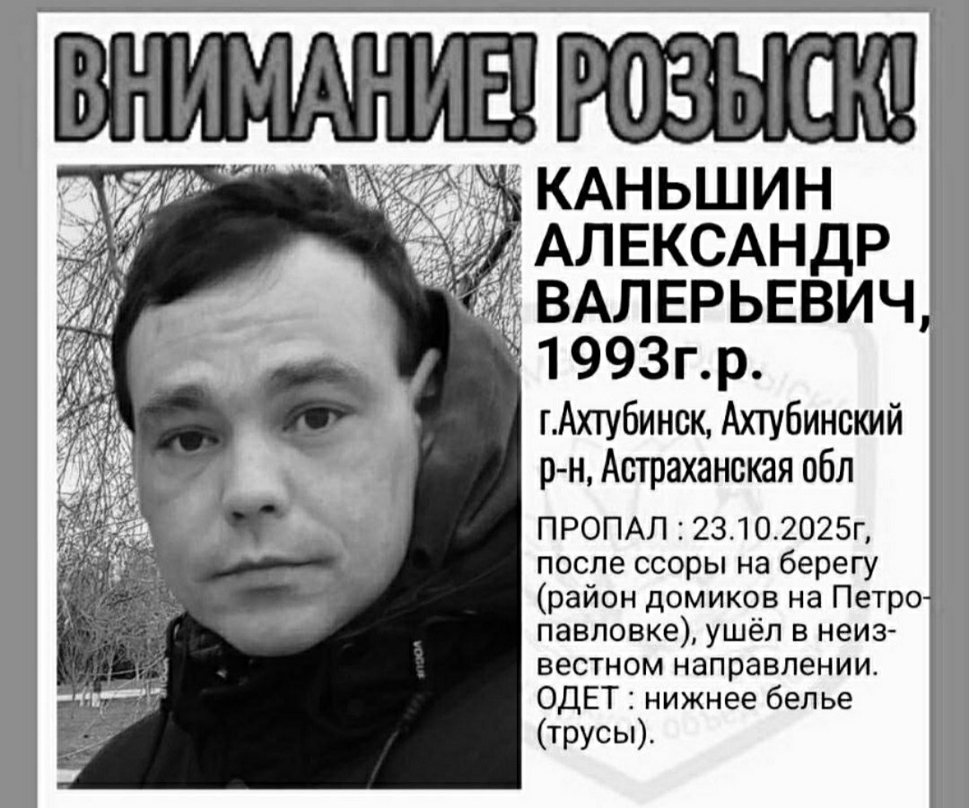 Сообщается, что сегодня обнаружено тело 32-летнего ахтубинца, пропавшего 23 октября.
