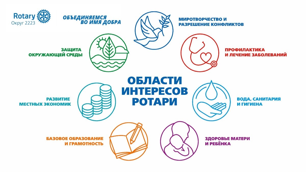 Фонд Ротари (The Rotary Foundation) — некоммерческая корпорация, которая поддерживает усилия организации Ротари Интернешнл по достижению взаимопонимания и мира во всём мире. Фонд был создан в 1917 году и поддерживается исключительно за счёт добровольных взносов. На съезде 1917 года президент Ротари Арч Кламф предложил создать фонд «для добрых дел в мире». Эта идея и первоначальный взнос в размере 26,50 долларов привели в движение мощную силу, изменившую жизни миллионов людей по всему мир, а размер Фонда Ротари вырос до более чем 1 миллиарда долларов США. Области интересов Фонда Ротари сегодняшний день состоит из 7 пунктов: ⠀ ⠀ ⠀ 🔹 Базовое образование и грамотность ⠀ ⠀ ⠀ 🔸 Развитие местных экономик ⠀ ⠀ ⠀ 🔹 Профилактика и лечение заболеваний ⠀ ⠀ ⠀ 🔸 Здоровье матери и ребёнка ⠀ ⠀ ⠀ 🔹 Миротворчество и предотвращение конфликтов ⠀ ⠀ ⠀ 🔸 Вода, санитария и гигиена ⠀ ⠀ ⠀ 🔹 Защита окружающей среды Также Фонд Ротари реализует гуманитарную программу «ПолиоПлюс», цель которой — искоренение