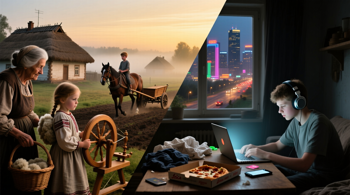 Мальчиков в этом возрасте тоже не баловали. Пока один ваш современный трёхлетка требует iPad, его предок уже учился кормить кур, мести полы и разводить огонь в печи. Это не суровость — это была необходимость. В деревне каждый рот был работником, а не потребителем контента.