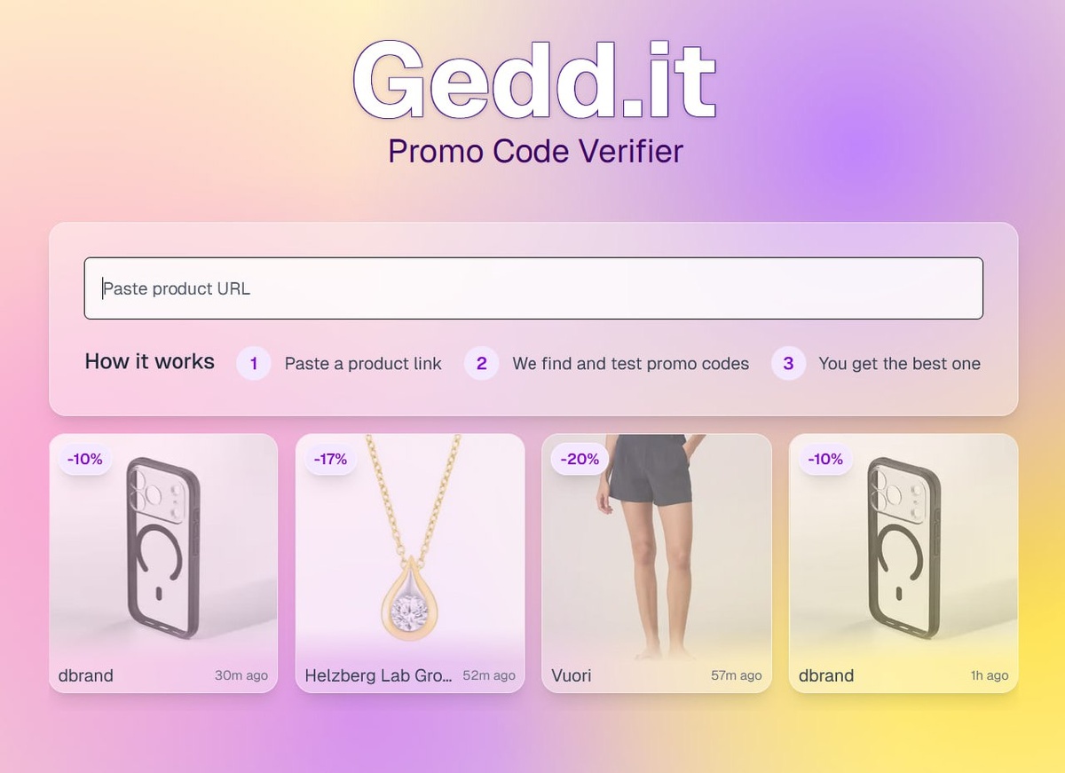 ⚡️ Ищем промокоды на ЛЮБЫЕ товары — релизнулся сервис Gedd.it, который поможет сэкономить на ваших покупочках