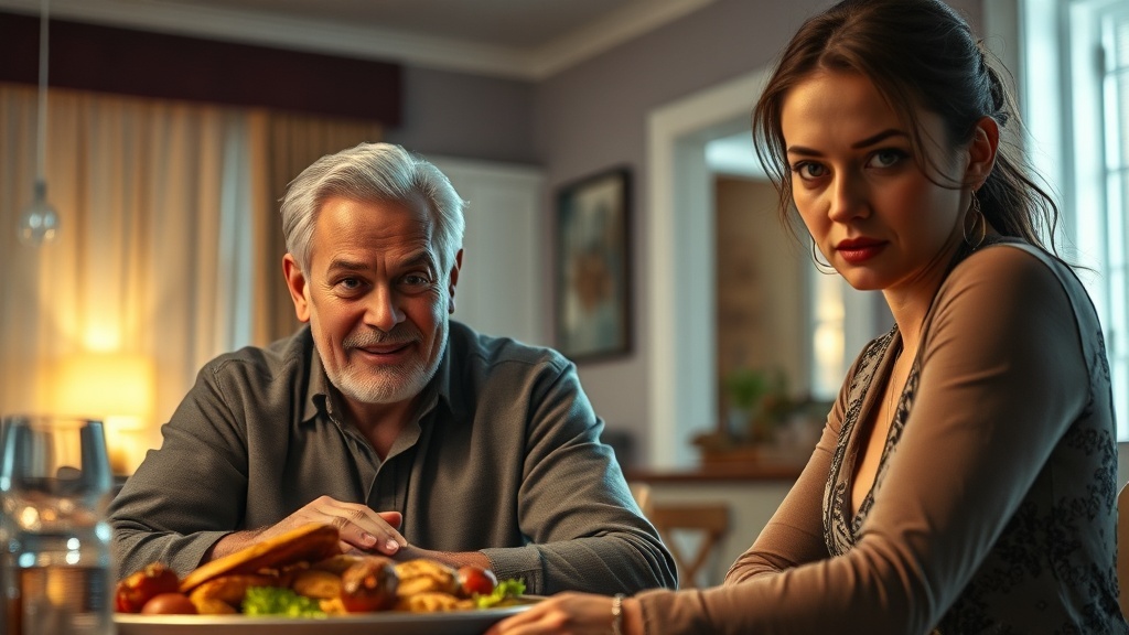 Андрей вышел из ванной, вытирая волосы полотенцем. Он был в хорошем настроении, видимо, смыл с себя всю дневную усталость. Он прошел на кухню, предвкушая ужин, но замер на пороге. На столе, вместо привычного жаркого, горела одна свеча.