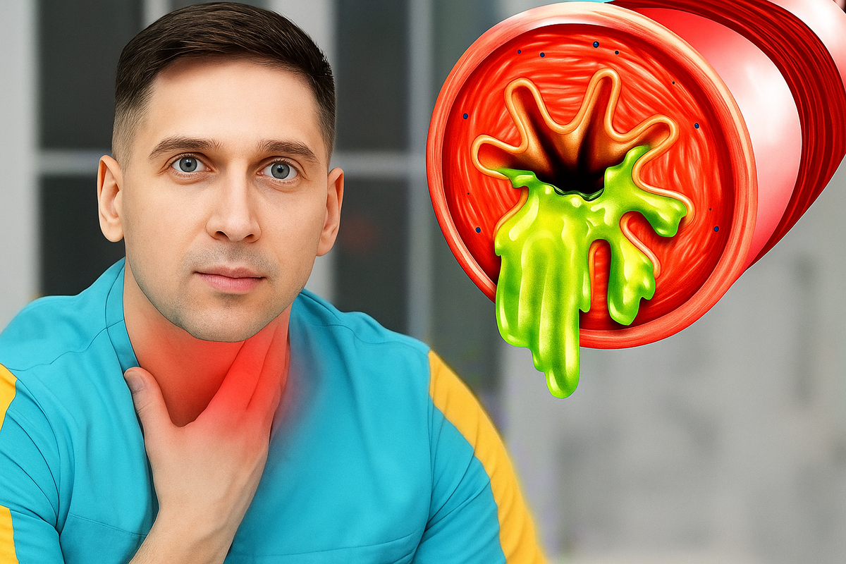 Бывает, вроде всё нормально — еда проходит, дыхание в порядке, а где-то глубоко в горле будто стоит ком. Не больно, но неприятно. Пробуешь пить воду, зеваешь, кашляешь — а ощущение остаётся. И чем больше обращаешь внимание, тем сильнее оно ощущается. Знакомо? Как невролог, я часто вижу пациентов, которые уже обошли ЛОРа, гастроэнтеролога, эндокринолога, сделали кучу анализов, но ответа так и нет. В итоге остаётся тревога и усталость от бесконечных поисков. Поэтому давайте спокойно разберёмся, откуда вообще берётся это чувство и с чего логичнее начать. Горло — место, где пересекаются дыхательные пути, мышцы глотки и множество нервных окончаний. Малейший сбой в одной из систем может вызывать ощущение инородного тела. Причём часто дело не в самом горле — «виновником» может быть желудок, позвоночник, щитовидка или даже стресс. Самая частая причина. Долгий насморк, фарингит, тонзиллит — всё это раздражает слизистую. Секрет из носа стекает по задней стенке глотки, появляется першение, отё