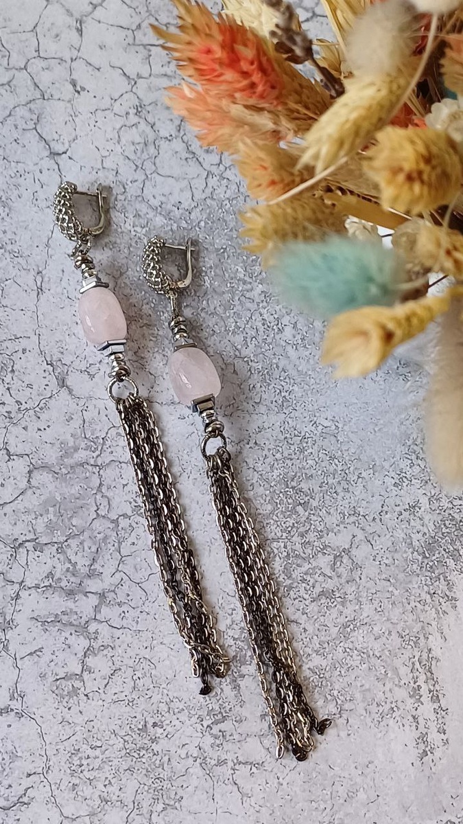 Лёгкие, подвижные, с кварцем и цепочками, будто танцуют сами по себе. Гематит добавляет контраст, серебро блестит, а чёрные цепочки дают характер. Теперь обычный образ становится чуть живее. Благодарность 1'680 🌸Пишите @copper_anna #copper_anna