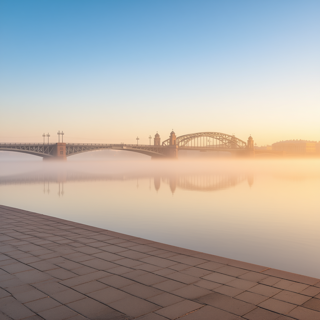 Представьте: вы выходите на набережную. Воздух свеж и пьяняще прозрачен, в нем еще нет городской пыли и суеты, только едва уловимый запах речной воды и цветущих лип. Где-то вдали медленно проплывают первые кораблики, словно призраки в утренней дымке, а золотой шпиль Петропавловской крепости уже начинает сверкать в лучах восходящего солнца, будто зажигая новый день 🗼