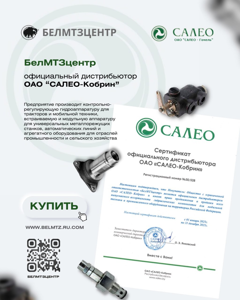 🔰🙃🙃🙃 🙃🙃🙃🙃🙃🙃🙃 🙃 БелМТЗцентр👇 ⚡️На заводе освоен выпуск более 450 типоразмеров гидроцилиндров с модельным рядом от 25 до 200 мм внутреннего диаметра гильз и длине штока до 1600 мм к автомобилям, тракторам, фронтальным погрузчикам, различной дорожно-строительной и лесопромышленной технике, к сельхозмашинам: ➡️с односторонним и двухсторонним выходом штока; ➡️поршневые одностороннего и двухстороннего действия; ➡️телескопические ОАО «САЛЕО-Кобрин» также производит седельно-сцепные устройства для автотехники производства ОАО «Минский автомобильный завод» ➿➿➿➿➿➿➿➿➿➿➿ 🔰Продукция предприятия обладает отличным соотношением цены и качества. При доступной стоимости вы получаете высококачественное и надежное изделие👇 📞 +7 (473) 270 70 29 🌐 www.belmtz.ru.com #belmtzcentr_каталог
