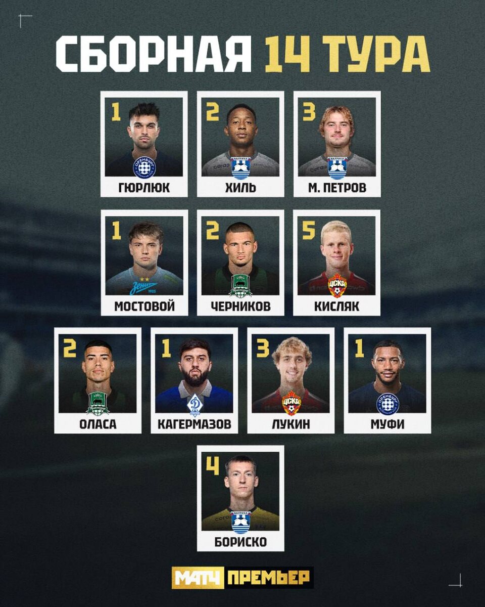 Максим Бориско, Максим Петров и Брайан Хиль в составе сборной 14-го тура Мир РПЛ по версии Матч Премьер 🦬