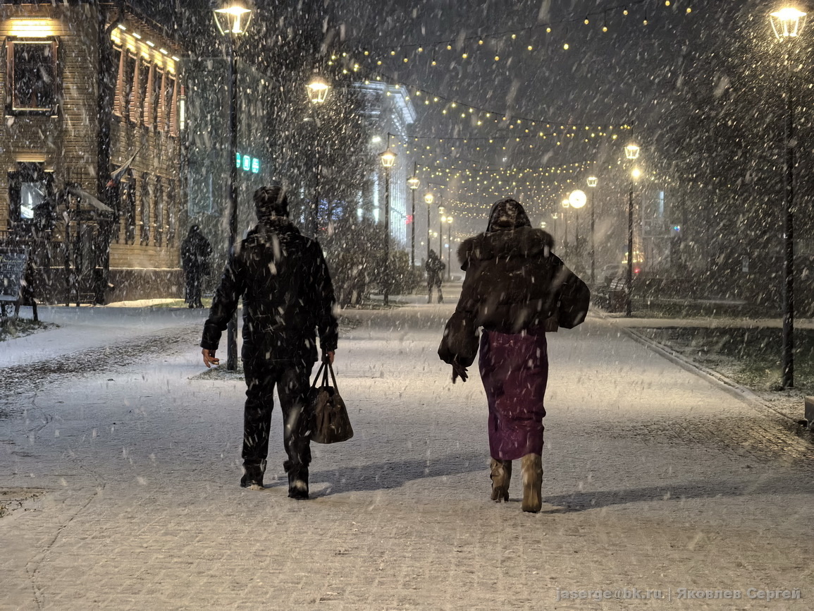 Не на 1-2 часа, а хотя бы до утра). Хороший снегопад закрыл все небо. Сложно поверить, что вчера на небе можно было разглядеть сияние. Узнаете герб Архангельска?