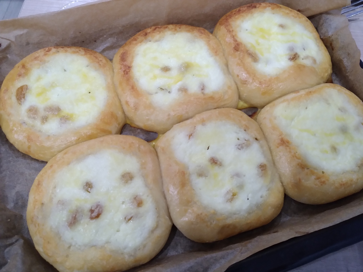 Привет! А мы ватрушками балуемся. Опять играюсь со своей электрической печью. Начинка с изюмом. Играла с температурным режимом. 20 минут пекла на 160 градусах, 20 минут на 180 градусах. Жар от задней стенки сильнее. От дверцы слабее. Похоже это особенность самой печи. На противне размещается 6 штук. Осталось половина сдобного теста. Поместила в холодильник в мешочке. Завтра что-нибудь еще испеку. Выпечка к компоту из сухофруктов. Спасибо за внимание!