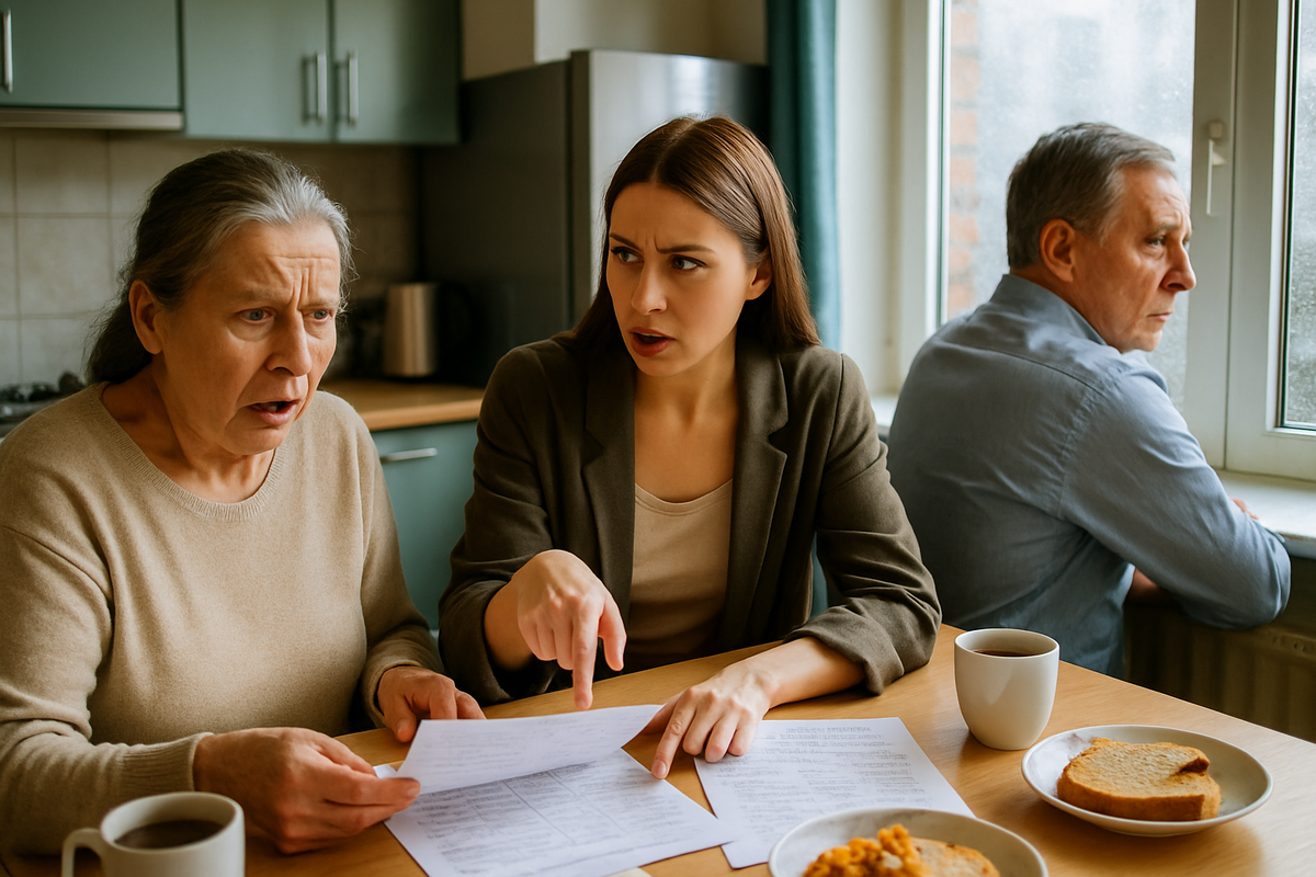 С этими словами она положила на стол два листка с расчётами, поднялась и вышла из кухни, оставив Валентину Сергеевну и Анатолия Петровича в полной растерянности.