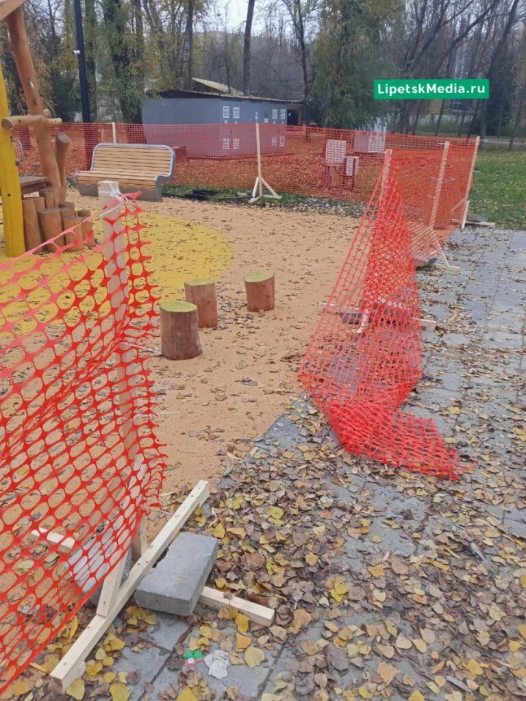 В выходной ноябрьский день липчане не смогли пройти мимо новой детской площадки в Нижнем парке, которая уже готова, но пока не сдана в эксплуатацию. Желание опробовать качели и горки оказалось сильнее всех запретов.