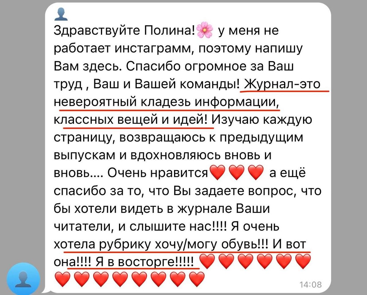 Спасибо за такие письма. Спасибо за вашу вовлеченность и поддержку ♥️ с удовольствием читаем всей командой ваши отзывы на стильный журнал 🙌🏻 Журнал – ваш источник вдохновения и стиля, каждый месяц за приемлемую цену (выпуск 490₽) быть на «волне», что сейчас актуально, как носить вещи и кайфовать от себя 🔥