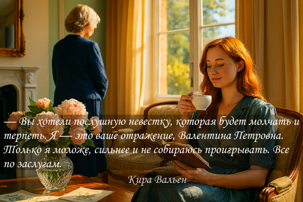 — Спросите у себя, — так же тихо ответила Софья, останавливаясь в дверях. — Вы хотели послушную невестку, которая будет молчать и терпеть. Я — это ваше отражение, Валентина Петровна. Только я моложе, сильнее и не собираюсь проигрывать. Все по заслугам.