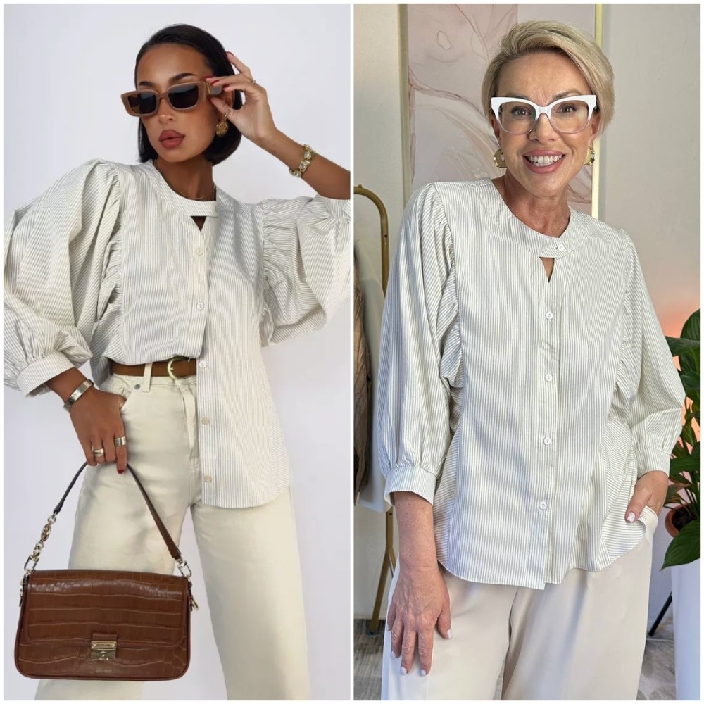 Здравствуйте, дорогие читатели! Меня зовут Ирина, я - стилист, и на этом канале показываю одежду и аксессуары с Wildberries такими, как они есть, то есть, из серии "ожидание/реальность". Мои параметры: рост 169 см, вес 67 кг, 94-74-100 ✅Основной канал: Стильно - не значит дорого! Ставьте лайк в поддержку канала, и давайте смотреть на мою сегодняшнюю покупку. Рубашка с фонариками: воздушный крой Эта модель в нежном бежевом оттенке сочетает классическую основу с современным объемным силуэтом. Рубашка из хлопковой смеси с застежкой на пуговицы сохраняет строгость, а широкие рукава-фонарики добавляют образу динамики и легкости. Крой позволяет варьировать силуэт: при заправлении подчеркивается линия талии, а свободное ношение мягко скрывает область живота. Качество материалов проявляется в пластичности ткани, сохраняющей форму без излишней жесткости. Конструктивные преимущества: Рубашка демонстрирует редкое сочетание элегантности и непринужденности. Она органично смотрится с деловыми брюкам