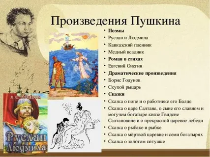 - Сказки («Сказка о рыбаке и рыбке», «Сказка о мёртвой царевне…») — не стилизации, а оригинальные произведения на основе народных сюжетов. Пушкин сохраняет ритм, повторы, присказки, но наполняет их психологической глубиной и авторской иронией.