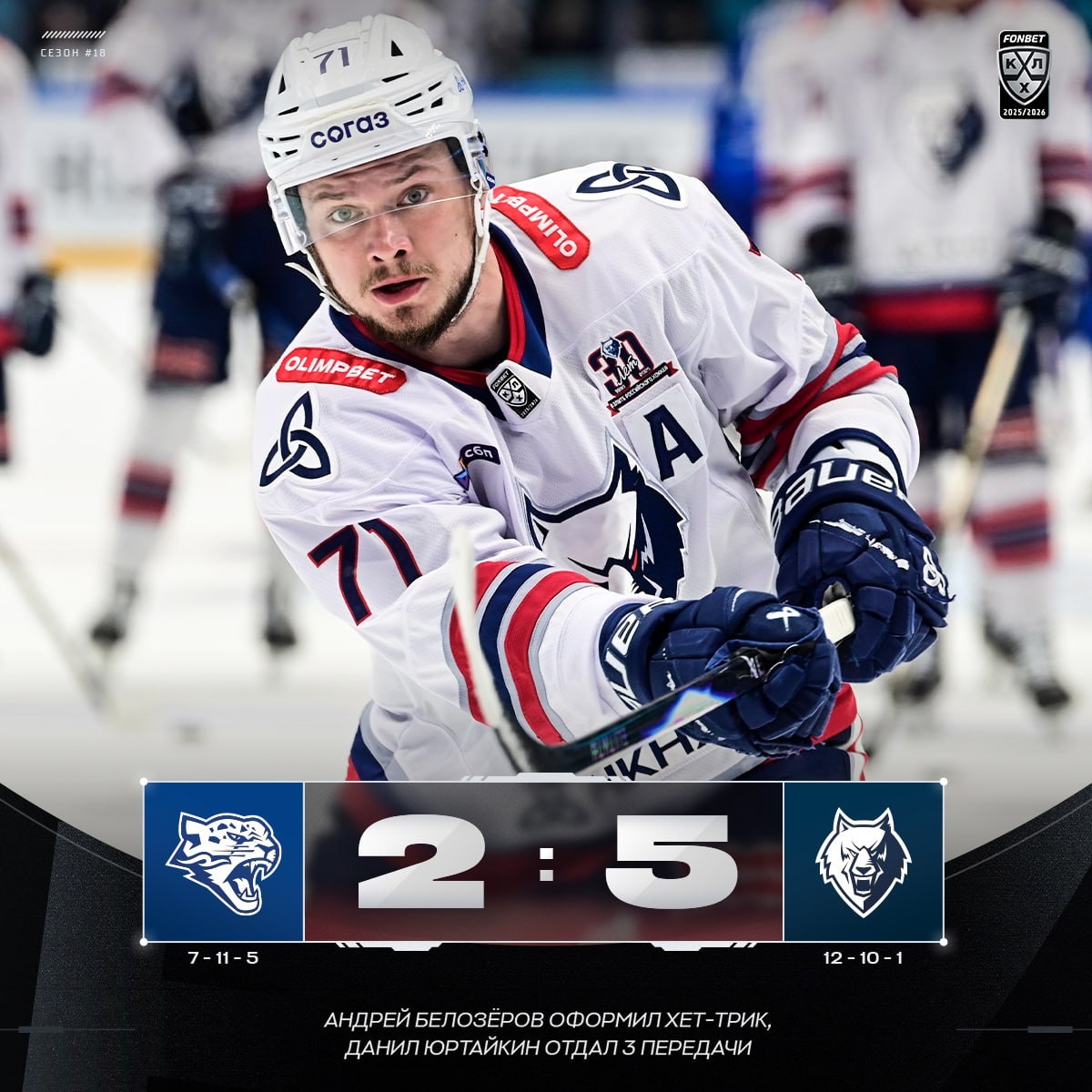 🐺 Хет-трик Андрея Белозёрова принес «Нефтехимику» победу в Астане! #ФонбетКХЛ