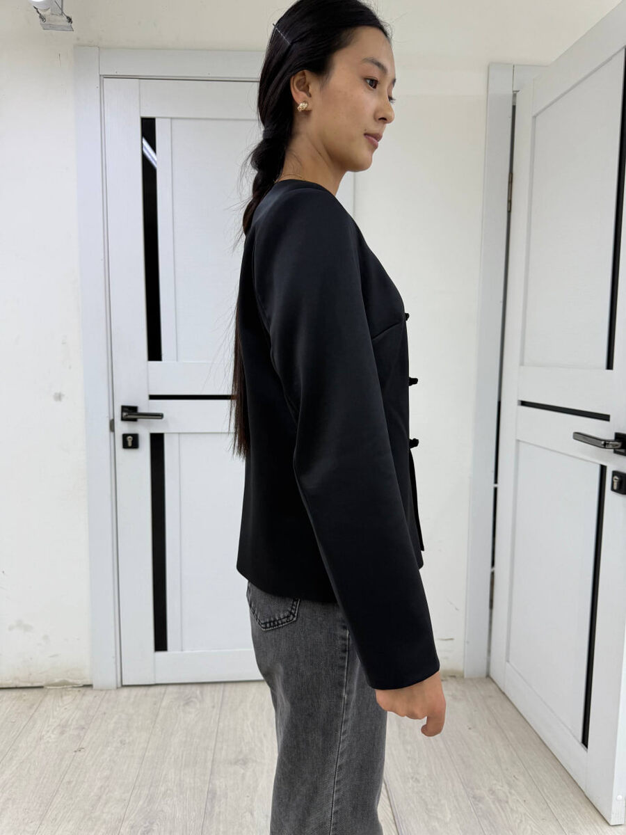 Она уже знакома нашим подписчикам: модель без воротника, с декоративными петлями спереди, выполненная в лаконичном и изящном силуэте.