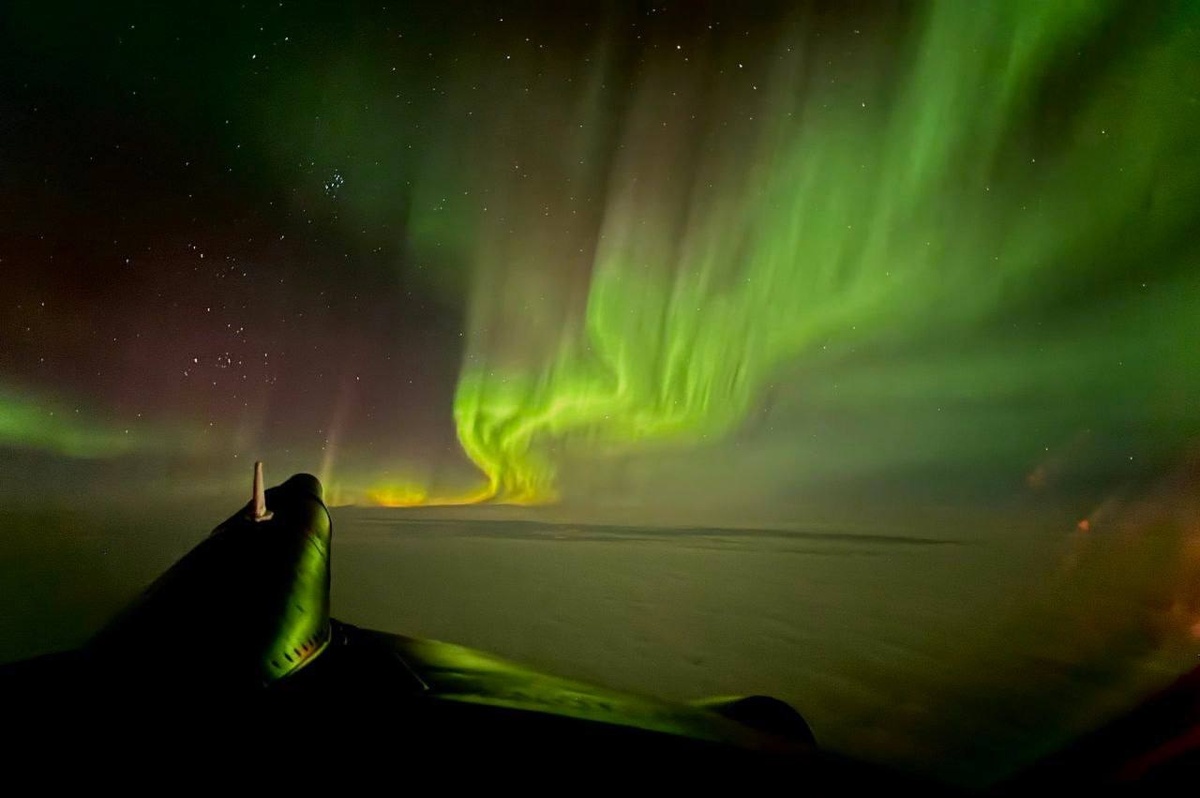 Наше северное сияние из кабины стратегического ракетоносца Ту-95МС🔥