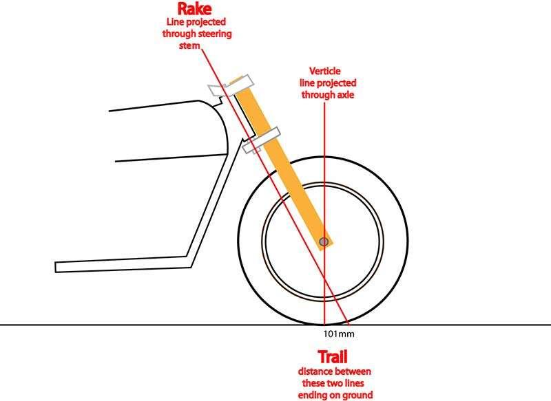 Что такое Trail, и как он влияет на управляемость мотоциклом Trail (трейл) - это параметр в геометрии мотоцикла, изменив который, можно повлиять на управляемость мотоцикла. Для того, что бы понять что такое трейл, нужно визуально продолжить линию вилки до поверхности, и расстояние от места пересечения линии с поверхностью, до пятна сцепления шины и будет называться трейл. Чем меньше этот отрезок, тем лучше управляемость. Trail Braking - это понятие хорошо известно профессиональным гонщикам, но пользуются и обычные мотоциклисты. Многие наверняка замечали, что в момент торможения передним колесом, управляемость у мотоцикла улучшаются, как раз именно потому, что при смещении нагрузки, меняется угол вилки, и как следствие уменьшается Trail. Многие использует этот приём для вхождения в повороты.