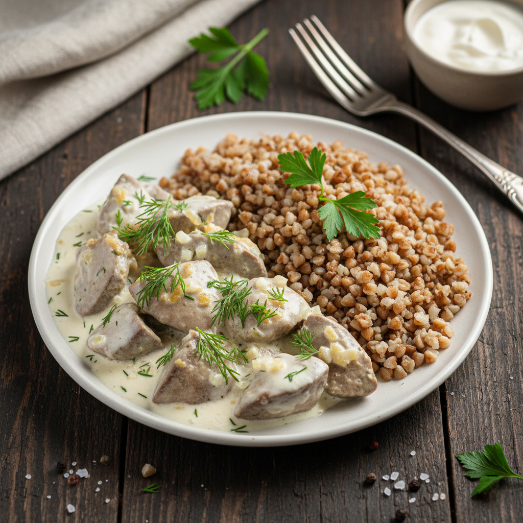 Куриная печень в сметанном соусе — это идеальный ужин: богатый белком, с высоким содержанием железа, и готовится всего за 20 минут. Нежный сметанный соус обволакивает печень, делая ее невероятно сочной, а рассыпчатая гречка служит идеальным полотном для этого сливочного вкуса. Шаг 1: Готовим гречку Шаг 2: Подготавливаем печень и овощи Шаг 3: Обжаривание и соус Шаг 4: Тушение в сметанном соусе Шаг 5: Подача Спасибо за просмотр! Приятного вам аппетита! Ещё больше разнообразных рецептов на моем канале Mommy Chef 👩🍳в "Телеграм", а так же видео-рецепты на Rutube