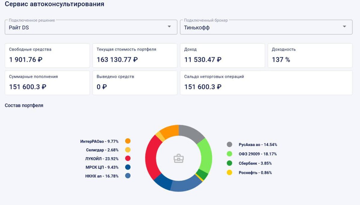 137% годовых, или 11,5% в первый месяц работы с ИИ DS 🔥 #кейсклиентаDS Клиент: Святослав , 28 лет, Москва, программист Точка А (до консультации) Нет понимания работы фондового рынка, из доступных инструментов использовались только банковские вклады и накопительные счета. Есть небольшое понимание работы финансовой системы в целом, но нет базы для понимания инвестиций. Желание разобраться и приумножать свой капитал из года в год Растить капитал чтобы обеспечить себя и детей стабильным будущим, купить новую квартиру Что было сделано ? Составлен финансовый план, определен риск-профиль, открыт ИИ DS на 120 тыс. рублей, рассчитаны регулярные пополнения для достижения цели с учетом средней доходности Точка Б (результат) В первый месяц работы с ИИ прирост капитала составил 11,5% (137% годовых). Появилось понимание работы инструмента, клиентом принято решение увеличить регулярные пополнения на 10 тыс. в месяц 🔥 — если тоже считаете результат работы инструмента ИИ DS достойным