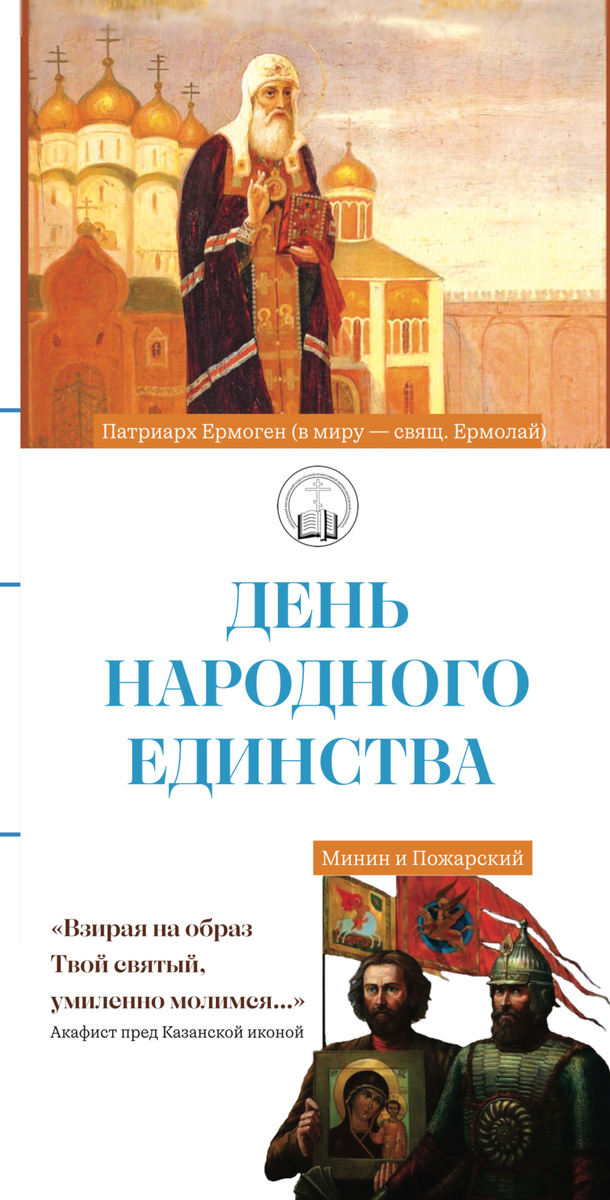 1. День народного единства — праздник, напоминающий о торжестве веры и сплочённости русского народа в 1612 году. Этот праздник посвящён освобождению Москвы от польско-литовских интервентов в 1612 году. Тогда народ, несмотря на хаос Смутного времени, объединился вокруг веры и общей цели — защиты Отечества. 2. Освобождение Москвы ополчением Минина и Пожарского стало возможным благодаря духовному единству под покровом Божией Матери, под знаменем Её Казанской иконы. Ополчение под руководством Кузьмы Минина и Дмитрия Пожарского вдохновлялось Казанской иконой — святыней, ставшей духовным знаменем. Эта икона символизировала Божию помощь и надежду, сплотив людей разных сословий и происхождений для спасения Отечества. 3. Православие – духовный стержень русской цивилизации, основа её культуры и национальной идентичности. На протяжении веков Православие формировало русскую культуру, государственность и самосознание. Ценности милосердия, справедливости и соборности, укоренённые в православной
