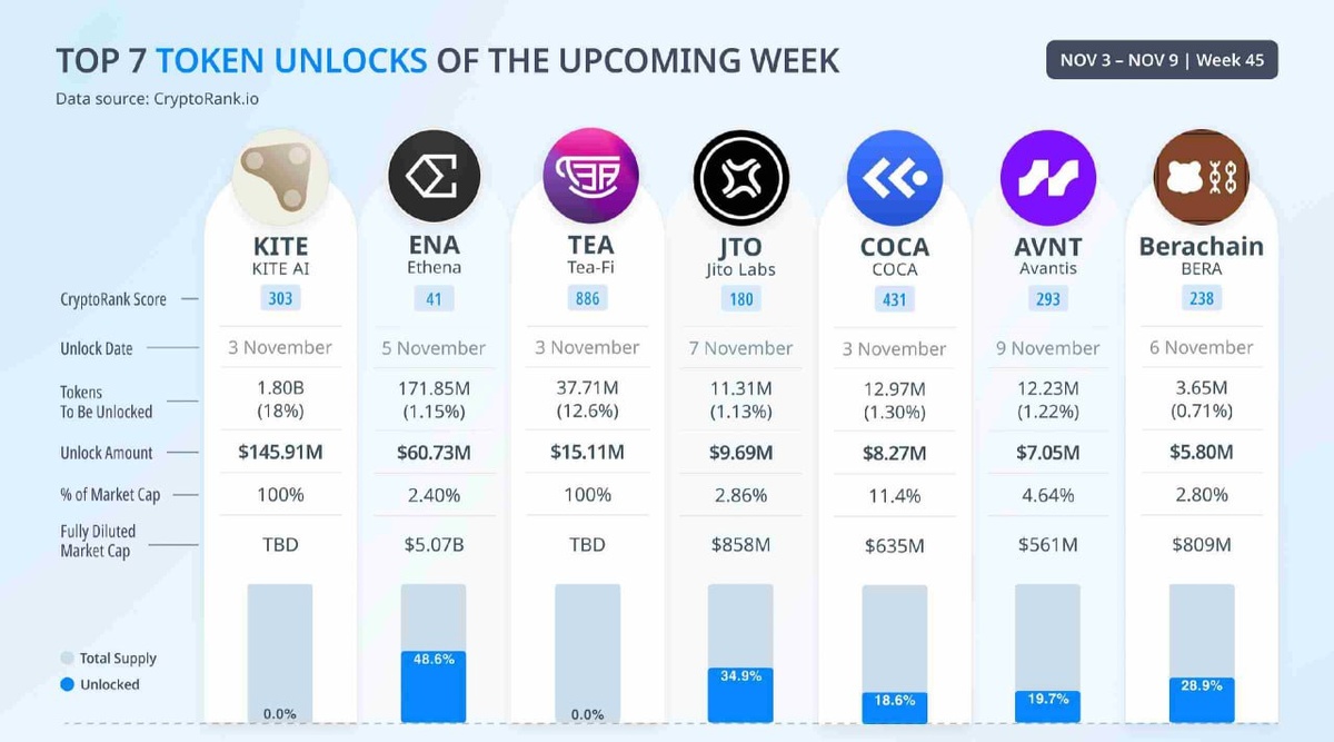 🔸Топ 7 токенов, которые разблокируют на этой неделе