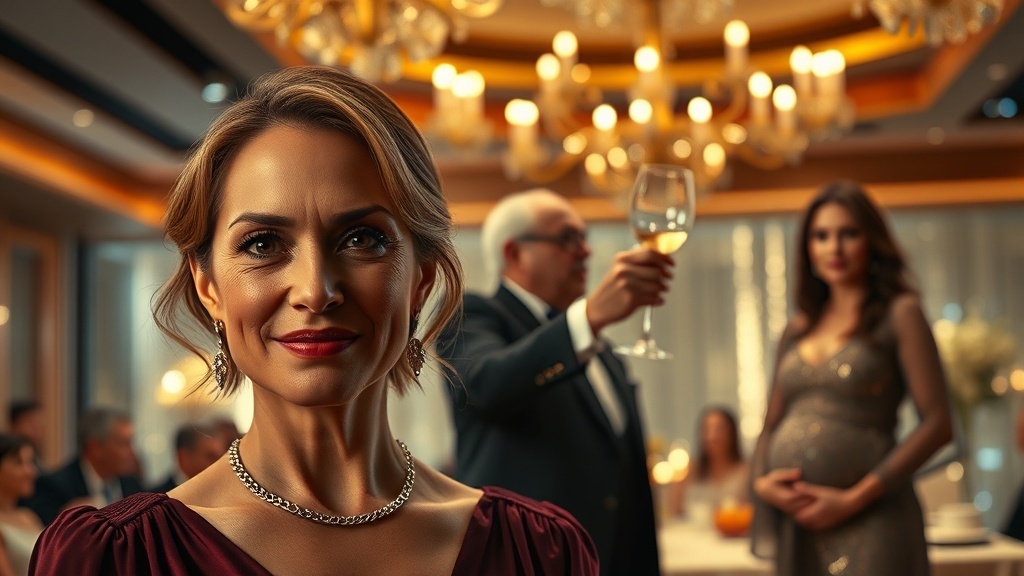 — Дорогие друзья! — её голос гремит, наполненный фальшивым пафосом. — Сегодня у нас двойной праздник! Мы не только отмечаем десятилетие совместной жизни моего сына и Ирины, но и встречаем будущее нашей семьи!