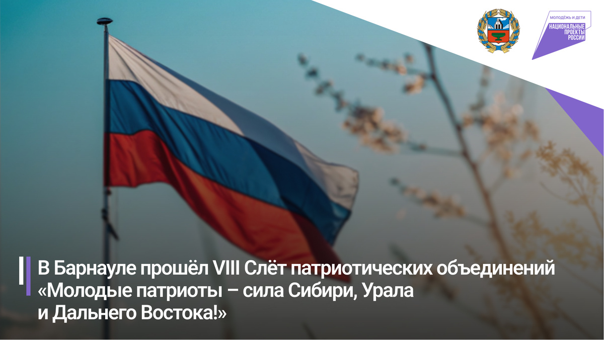 С 30 октября по 1 ноября в Барнауле состоялся VIII Слёт патриотических объединений «Молодые патриоты – сила Сибири, Урала и Дальнего Востока!» в рамках регионального проекта «Мы вместе (Воспитание гармонично развитой личности)» национального проекта «Молодежь и дети». Мероприятие было приурочено к 80-летию Победы в Великой Отечественной войне и Году защитника Отечества.
