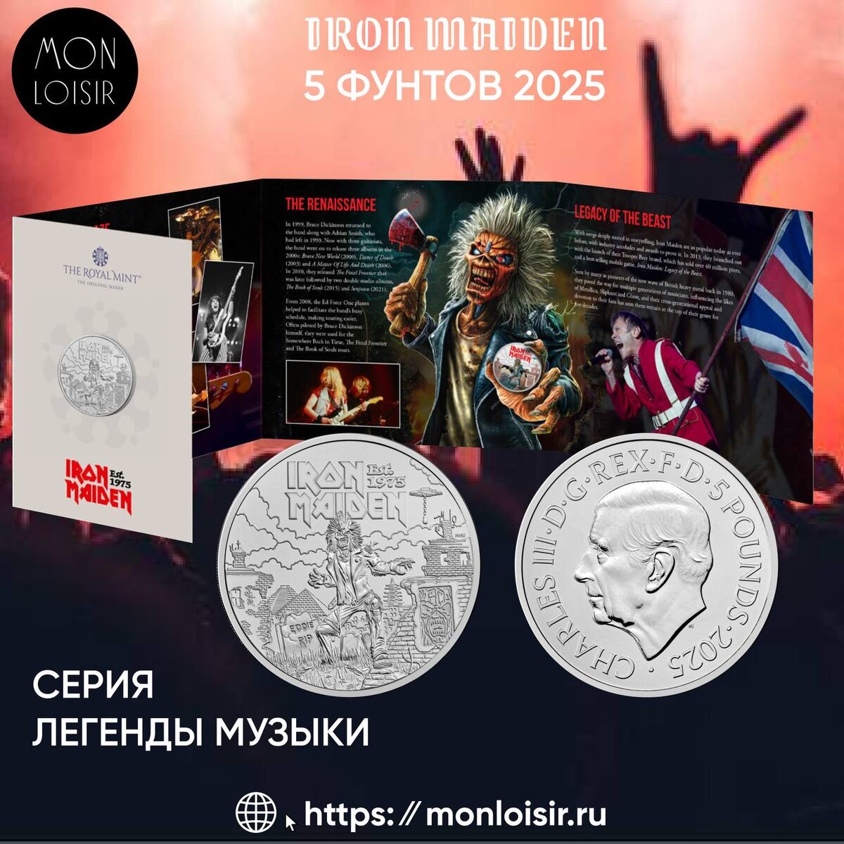 🎵 Легенды британской музыки пополняются! 🎵 Друзья! Вы готовы украсить свою коллекцию по-настоящему культовой монетой? Наша музыкальная серия от Великобритании представляет вам официальную памятную монету 5 фунтов 2025 года, посвященную легендарным IRON MAIDEN! 🤘 Группа, оказавшая огромное влияние на всю мировую музыку, теперь увековечена в металле. Монета особенная для рок-фанатов и коллекционеров! Почему? ✨ Легендарный статус Iron Maiden ✨ Потрясающий дизайн: реверс с фирменным талисманом группы — выглядит просто сокровище! ✨ Отличное состояние BU (Brilliant Uncirculated): монета улучшенного качества чеканки. ✨ Стильный официальный буклет дышит духом Iron Maiden: агрессивный шрифт, культовые символы группы и портрет легендарного зомби Эдди. Купить ➡ Монета 5 фунтов в буклете IRON MAIDEN - часть большой коллекции. Создать коллекцию ➡ Другие великие исполнители в разделе нашего каталога Легенды музыки 🎸 #IronMaiden #памятныемонеты #Нумизматика #Коллекционирование #Музыка #Рок #Лег