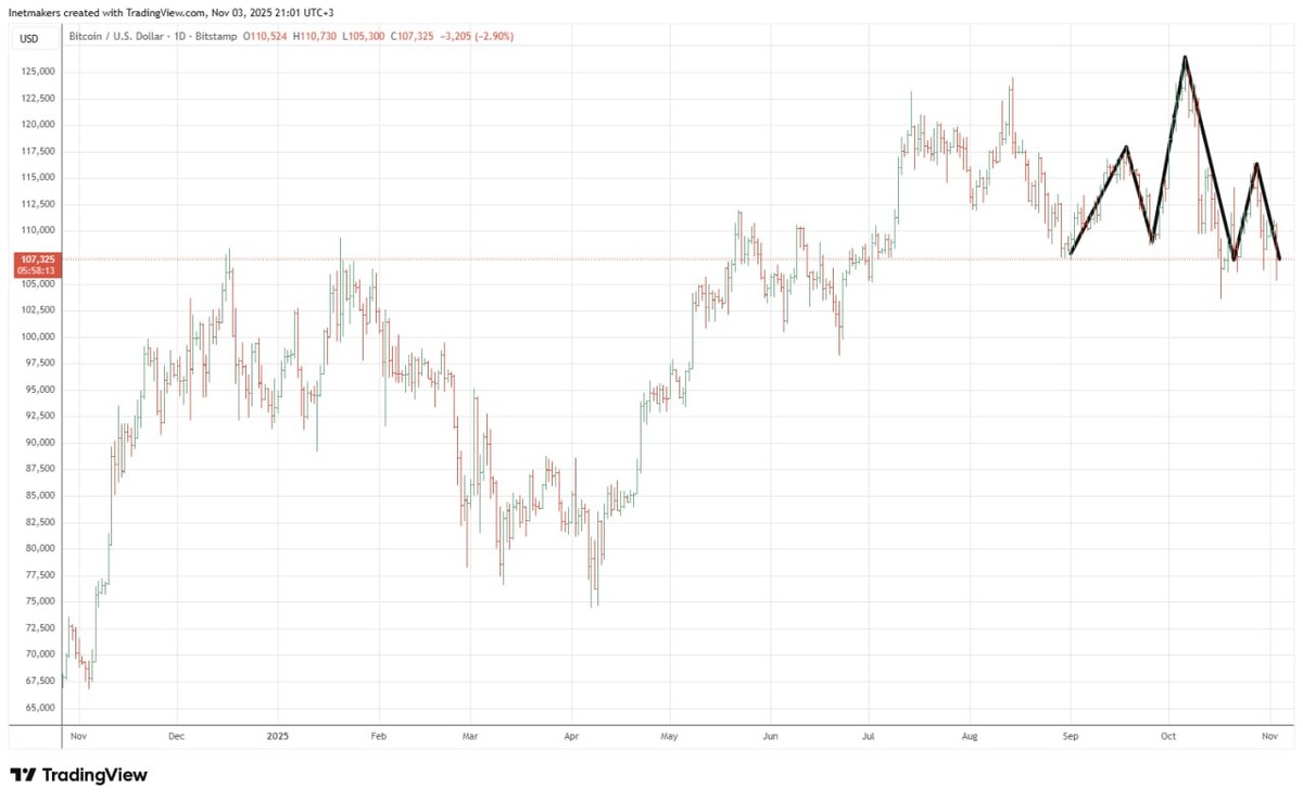 Среднесрочная голова-плечи в Биткойне, вот можно проверить как работает технический анализ!