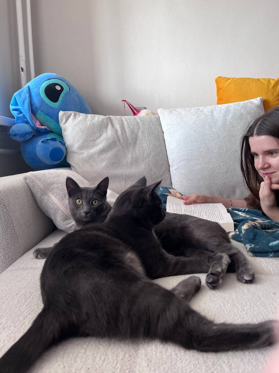 Идеальный день - никуда не спешить и читать. Можно еще и котов парочку погладить. Но мои разбежались спустя минуту после фото 😅 Напиши, что читает на этих выходных?