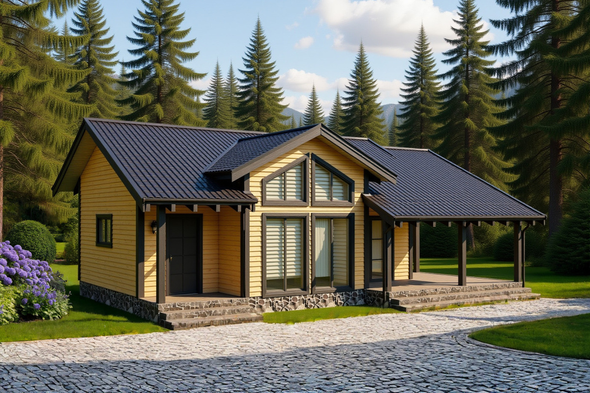 Так вот, у этого дома появился «младший брат» — проект 74-06WIKING, ещё компактнее, но не менее уютный и продуманный. 56 м² — звучит скромно, но этот дом опровергает все стереотипы о маленьких площадях.