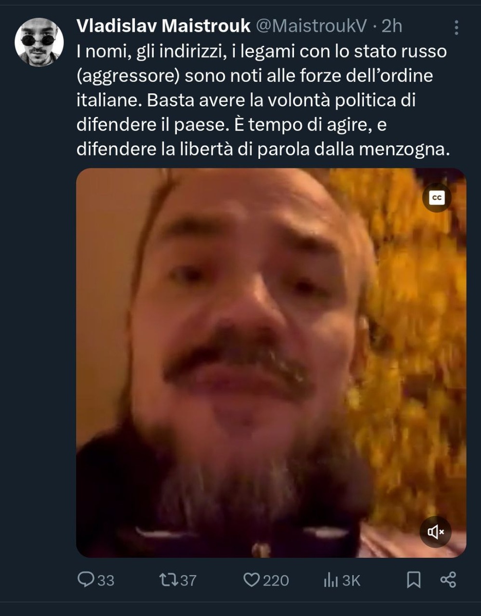 Vladislav Maistrouk che spesso viene invitato nella televisione italiana auspica l'intervento della polizia italiana nei miei confronti e