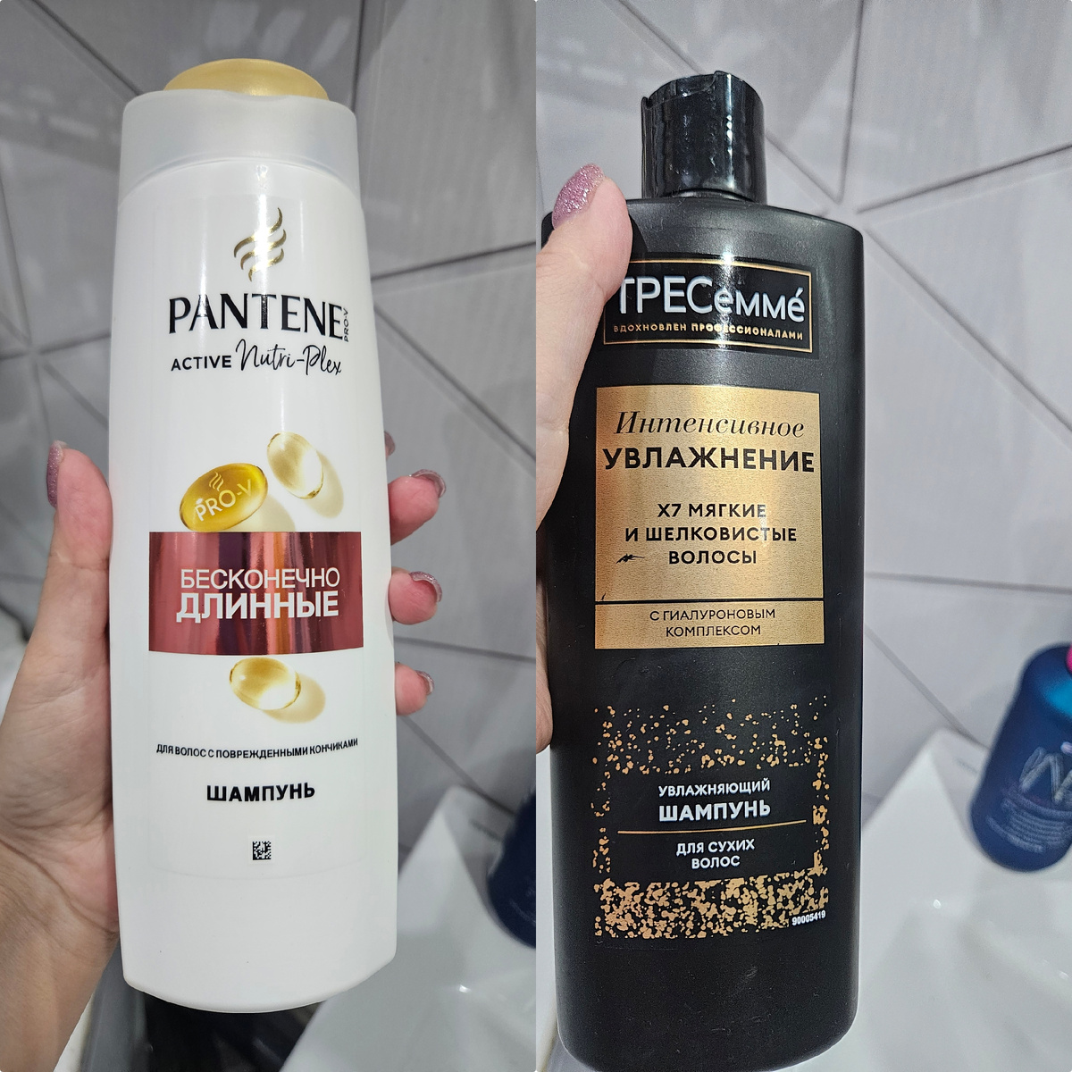 Всем привет🖐 Были вопросы о моём шампуне, который мне очень понравился. И я подумала сделать полный обзор моего ухода за волосами. Конечно, начать нужно с шампуня. Очищение - важнейший этап ухода. У меня всегда на полочке стоит два, а то и три разных шампуня. Эти два красавца для базового ухода. Ими пользуются все мои домашние, и я тоже. Но для себя я открыла замечательный шампунь, который делает волосы лёгкими, воздушными, блестящими. И с ним кожа головы долго остаётся чистой Также мой уход не обходится без бальзамов и кондиционеров. Я покупаю разные. Несколько месяцев подряд пользуюсь Pantene. Очень нравится Кстати, Herbal essences тоже очень понравился Стараюсь делать масочки Моя горячо полюбившаяся Estel Делает волосы гладкими, шелковистыми. Легко смывается. Приятно пахнет😊 Ещё одна маска, это Pantene Из серии глубокое увлажнение. Имеет очень приятный аромат. Волосы хорошо увлажняет, уплотняет. Есть в уходе моём теперь и средства для светлых волос, чтобы поддерживать красивый