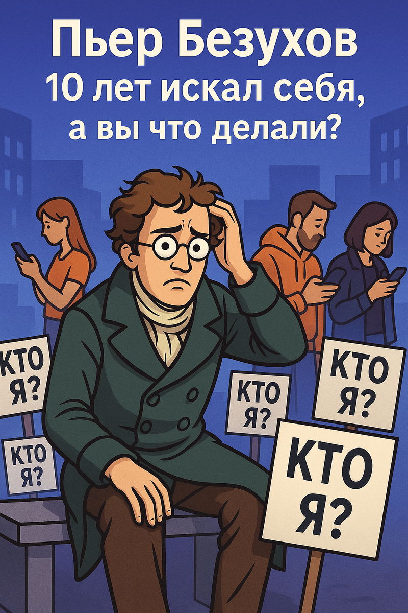 Самое подробное в истории художественной литературы руководство по тому: как не найти себя в жизни. Главный проводник в этом вопросе — Пьер Безухов. Помните того неуклюжего, добродушного толстячка в очках, который появляется в первых главах? Если бы он жил сегодня, его профиль в соцсетях кричал бы о «поиске себя» и «расстановке приоритетов». А его жизнь — это наглядное пособие по тому, как растянуть экзистенциальный кризис на полтора десятилетия. Представьте: вы скромный такой, в очках, никому не нужный уютный задрот. И тут — опа! — вам в лоб падает папино наследство размером с бюджет небольшой европейской страны. Что делает нормальный человек? Правильно, покупает остров и учится играть на укулеле. Что делает Пьер? Женится на первой красавице, Элен Курагиной. Это классический жизненный сценарий «ой, а что так можно было?». Коллеги, это высшая форма прокрастинации! Когда ты не знаешь, чего хочешь от жизни, и решаешь: «А выйду-ка я замуж! То есть, женюсь!» Результат, как вы понимаете, пр