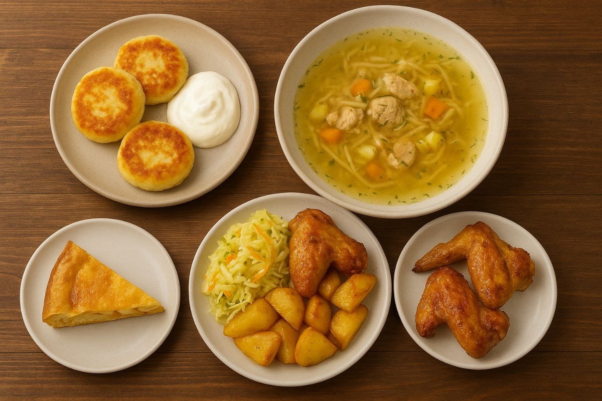 Привет, друзья! 💛 Вторник - отличный повод начать день с тепла и вкусного уюта дома. 🌞 Меню на день: 🍳 Завтрак: сырники со сметаной — нежные и ароматные. 🍲 Обед: куриный суп с лапшой — лёгкий и домашний. 🍽 Ужин: запечённые крылышки с картофелем и салат из капусты — сытно, просто и очень вкусно. 🍰 Десерт: яблочный пирог — ароматный и уютный, словно осень на тарелке. А вот и пошаговый рецепт ужина 👇 Запечённые куриные крылышки с картофелем Ингредиенты: Куриные крылышки — 800 г Картофель — 700 г Чеснок — 3 зубчика Подсолнечное масло — 2 ст. л. Соль, перец, паприка — по вкусу Приготовление: 1️⃣ Крылышки промой, обсуши и приправь солью, перцем и паприкой. 2️⃣ Картофель нарежь дольками, посоли, добавь масло и выдавленный чеснок. 3️⃣ Выложи картофель на противень, сверху размести крылышки. 4️⃣ Запекай при 200°C около 40–45 минут до румяной корочки. 5️⃣ Подавай с салатом из капусты — свежо и по-домашнему! 🥗 ✨ Вот и готов идеальный ужин: румяные крылышки, ароматный картофель и простое