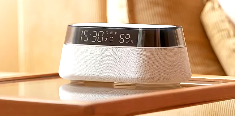 Настольные часы с беспроводной зарядкой объединяют в одном корпусе сразу несколько функций: зарядка смартфона мощностью 15 Вт, двойной будильник и портативная колонка с поддержкой Bluetooth. Беспроводная зарядка срабатывает просто — положил телефон сверху, и батарея пополняется без кабеля.