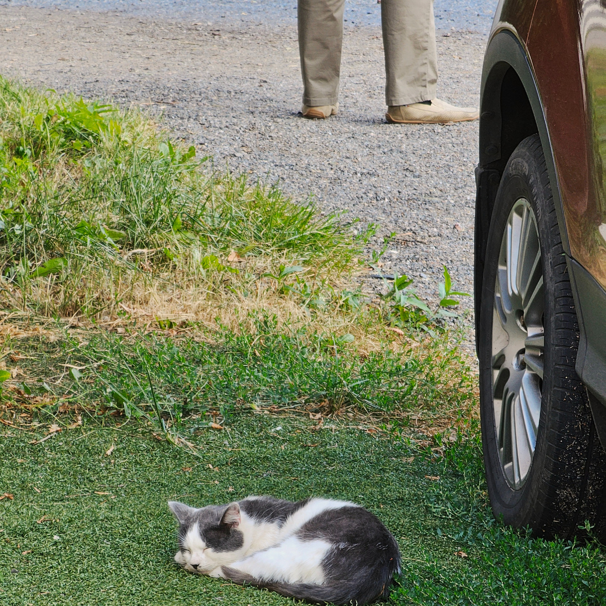 Приехали, зашли в одиг из двух рестов пообедать, на входе под лестницей лежал кот: