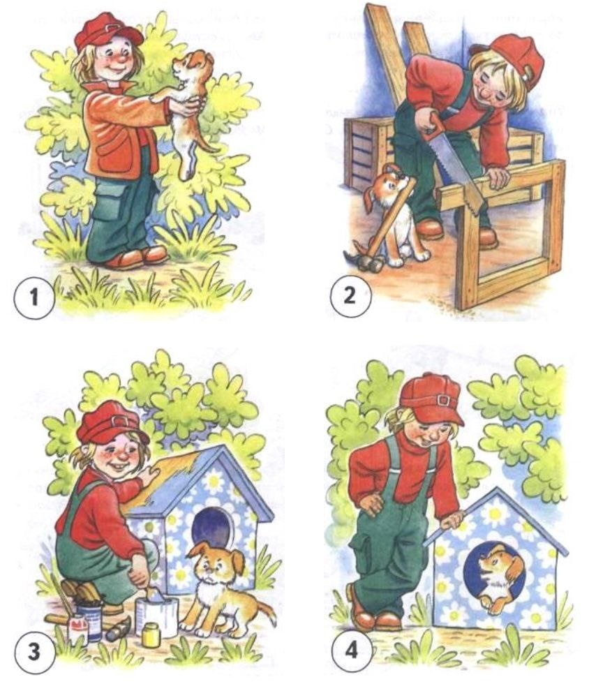 Пример: «Как щенок нашёл друга» или « Как Петя построил дом для Бобика» «Теремок».