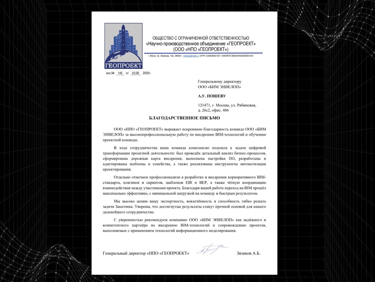 Компания BIM ENVELOP успешно завершила комплексный проект по внедрению BIM-технологий в рамках пилотного проекта одного из наших Заказчиков.