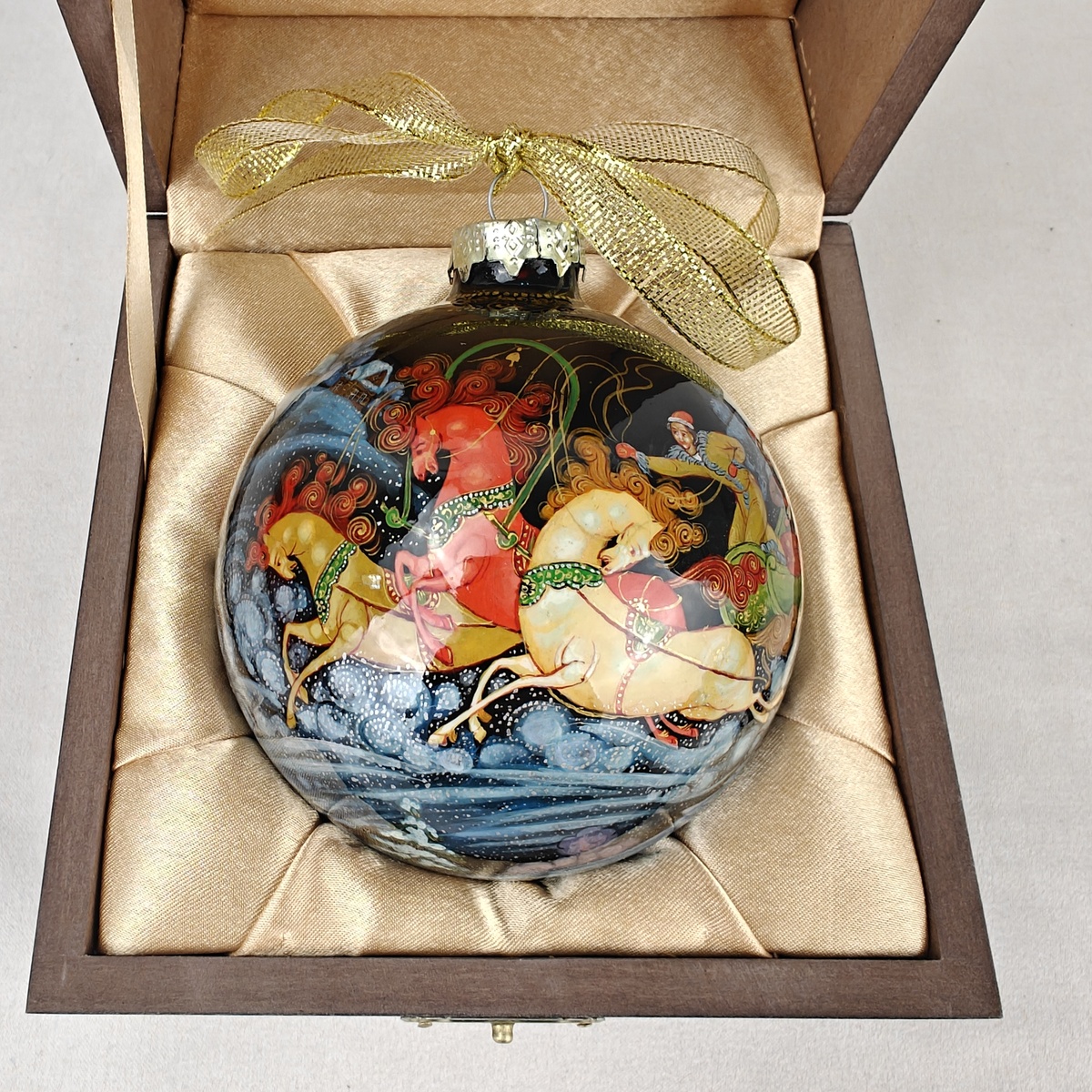 - Универсальность. Подходит и для украшения ёлки, и как самостоятельный подарок ценителям искусства.