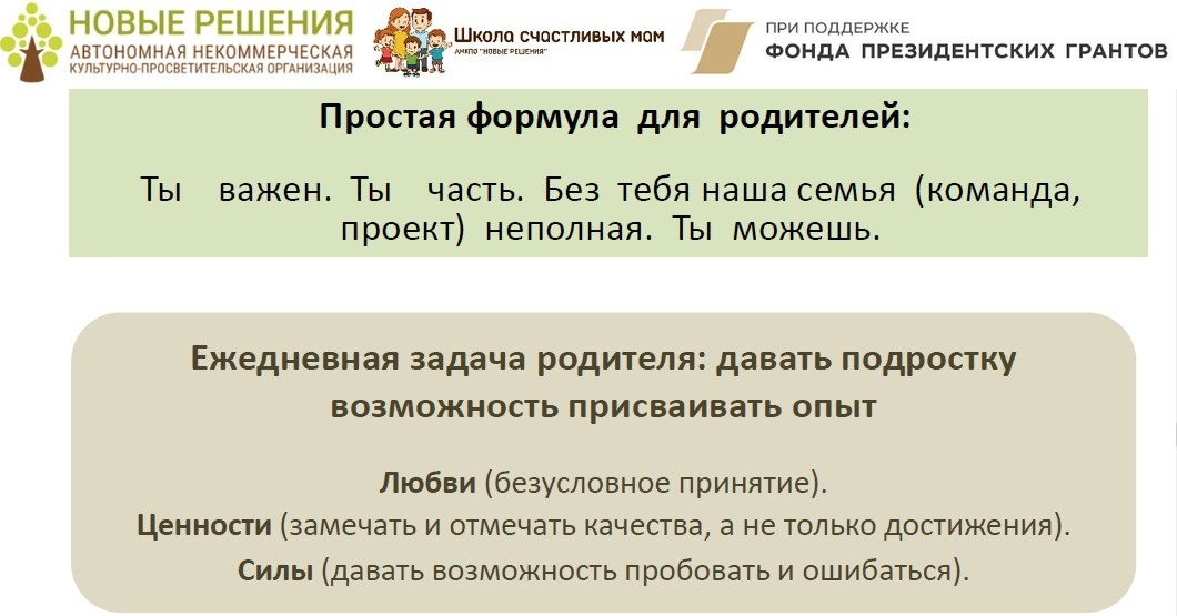 ❗Ежедневная задача родителя: давать подростку возможность присваивать опыт любви, ценности, силы.