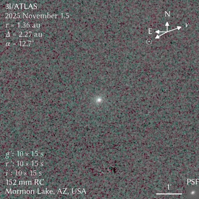 Несколько часов назад комета 3I/ATLAS стала видимой с нашей планеты. В настоящее время ее может видеть любой человек, вооруженный любительским телескопом. Так, китайский астроном из Аризоны Ичэн Чжан (Yicheng Zhang) ужесделал снимок межзвездной кометы как со своего личного любительского телескопа, так и с рабочего телескопа Lowell Discovery Telescope. «Комета 3I/ATLAS уже видна с Земли», - подписал он фотографии. Его личный телескоп имеет диаметр объектива 6 дюймов. Но многие из больших научных телескопов комету еще не видят. «Они сконструированы так, что не могут смотреть очень близко к линии горизонта, часто они смотрят вверх», - отмечает Ичэн Чжан. Кроме того, многие крупные телескопы пока не решаются «смотреть» на 3I/ATLAS, эта комета только недавно вылетела из-за Солнца, ибо не хотят рисковать сжечь свои приборы, они ждут, когда комета удалится от Солнца на безопасное расстояние. Но многие астрономы-любители уже могут увидеть 3I/ATLAS при условии хорошей погоды и чистого неба. Луч