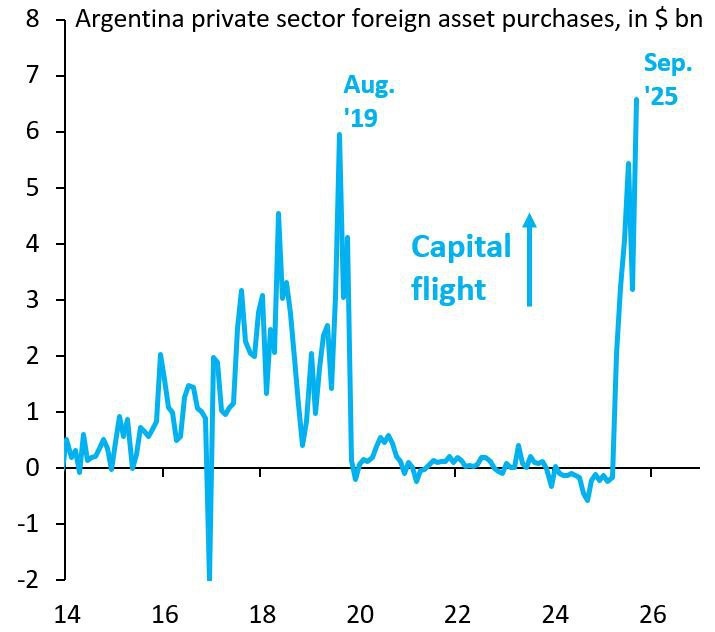 Дыра в кармане Аргентины: Капитал улетает рекордно быстро 💨📉 Центральный банк Аргентины опубликовал данные за сентябрь, которые сигнализируют об огромном оттоке капитала, по предварительным сообщениям, превзошедшем показатели августа 2019 года. Этот отток происходит на фоне продолжающейся экономической нестабильности, высокой инфляции и реформ, проводимых правительством президента Хавьера Милея. Хотя регулятор пытается стабилизировать ситуацию, в том числе через управление процентными ставками, доверие инвесторов остается низким. Важно отметить, что максимальный исторический отток капитала был зафиксирован ранее — около 9,5 млрд долларов в первом квартале 2018 года. Информация не нашла подтверждения в других источниках. Таким образом, сентябрьские цифры подчеркивают настойчивую проблему бегства денег из страны. #новости #БезПафосаФинансы #Аргентина #ОттокКапитала