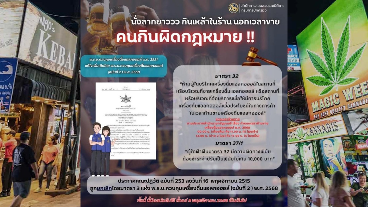 Новый закон об алкоголе вступает в силу 8 ноября В субботу, 8 ноября, в Таиланде вступает в силу новая версия Закона о контроле за оборотом спиртных напитков – Alcoholic Beverage Control Act (No. 2) B.E. 2568. И хотя радикальных изменений она не предполагает, ресторанная отрасль традиционно бьет тревогу, предупреждая о негативных последствиях для туризма, если закон придется соблюдать. Новый Alcoholic Beverage Control Act уточняет определение спиртных напитков (к ним относятся все пищевые жидкости с содержанием этанола более 0,5%), дает расширенное определение рекламе спиртного (в том числе с участием знаменитостей и блогеров) и проясняет вопрос продажи спиртного ночью. Последний момент вызвал отдельную критику со стороны Ассоциации ресторанов, поскольку Alcoholic Beverage Control Act (No. 2) B.E. 2568 теперь формально запрещает распитие спиртного в ресторанах после полуночи, даже если бутылка была куплена клиентами заранее или принесена с собой. Новый закон также повышает максимал