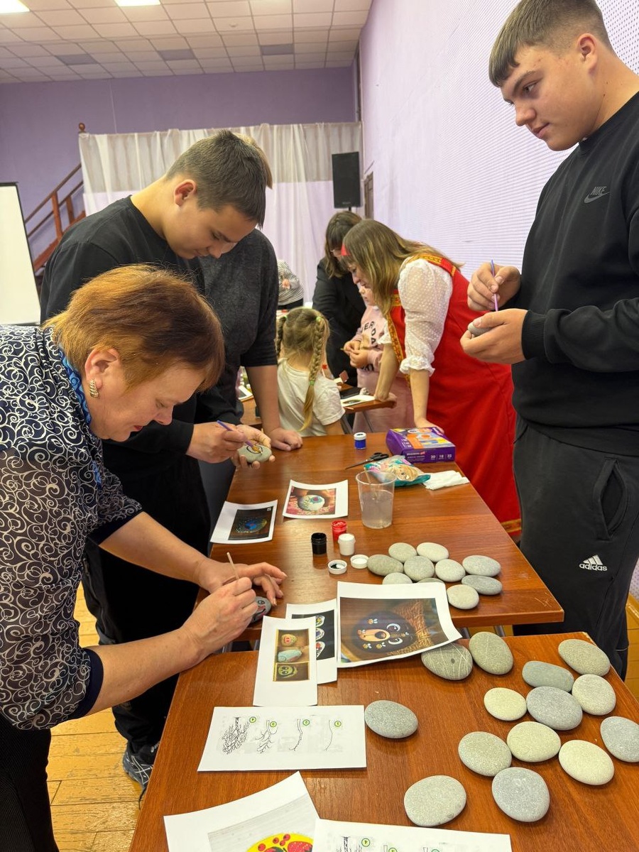 "Ночь искусств" в нашем районе: камни, краски и народы России! 🎨✨ 3 ноября в районном Доме культуры прошла ежегодная акция #НочьИскусств2025 🌙💫 Сотрудники Центральной библиотеки им. Н.С. Устиновича подготовили итересные активности: ✔ Арт-студия "Народные мотивы" — ребята и взрослые рисовали на камнях, превращая их в мини-шедевры! ✔ Интерактивная игра — проверяли знания географии: правильно размещали фигурки народов России на карте. 🗺🇷🇺 Было ярко, творчески и познавательно! Кто был? Делитесь своими работами в комментариях! 👇😍 #ГазетаПобеда #КультураРФ #ТворчествоРядом #НашРайон