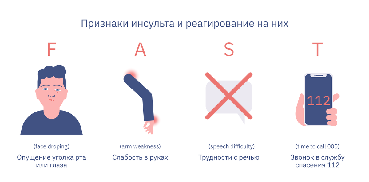 В России и многих других странах используется простая и эффективная мнемоника — УДАР. Она помогает быстро вспомнить основные симптомы инсульта: